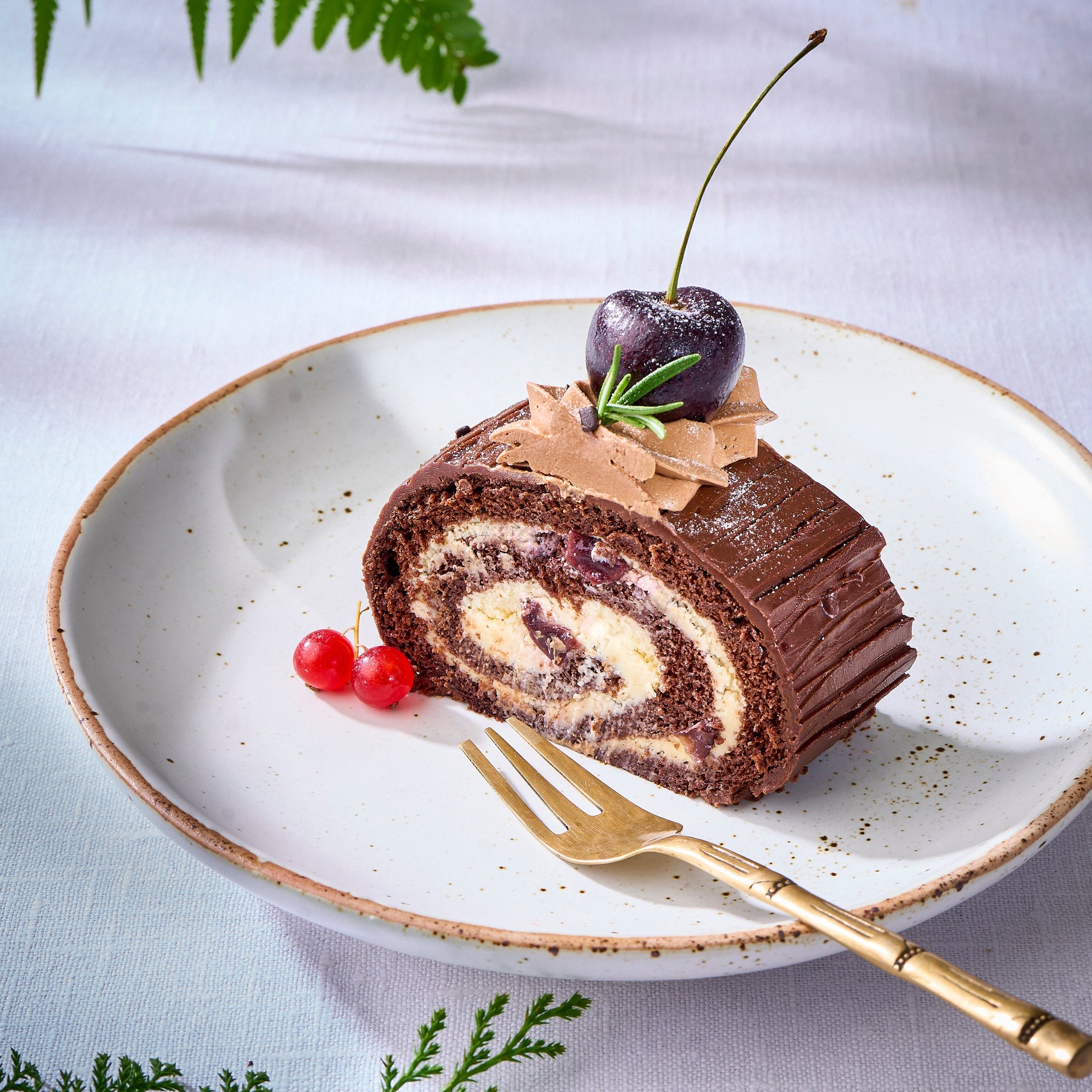All Things Delicious Log Cake is filled with lashings of vanilla chantilly, juicy cherries and chocolate cremeux. This buche-de-Noel is as festive as it gets! Covered in a couverture dark chocolate ganache, this log cake will be loved by both the young and not-so-young!