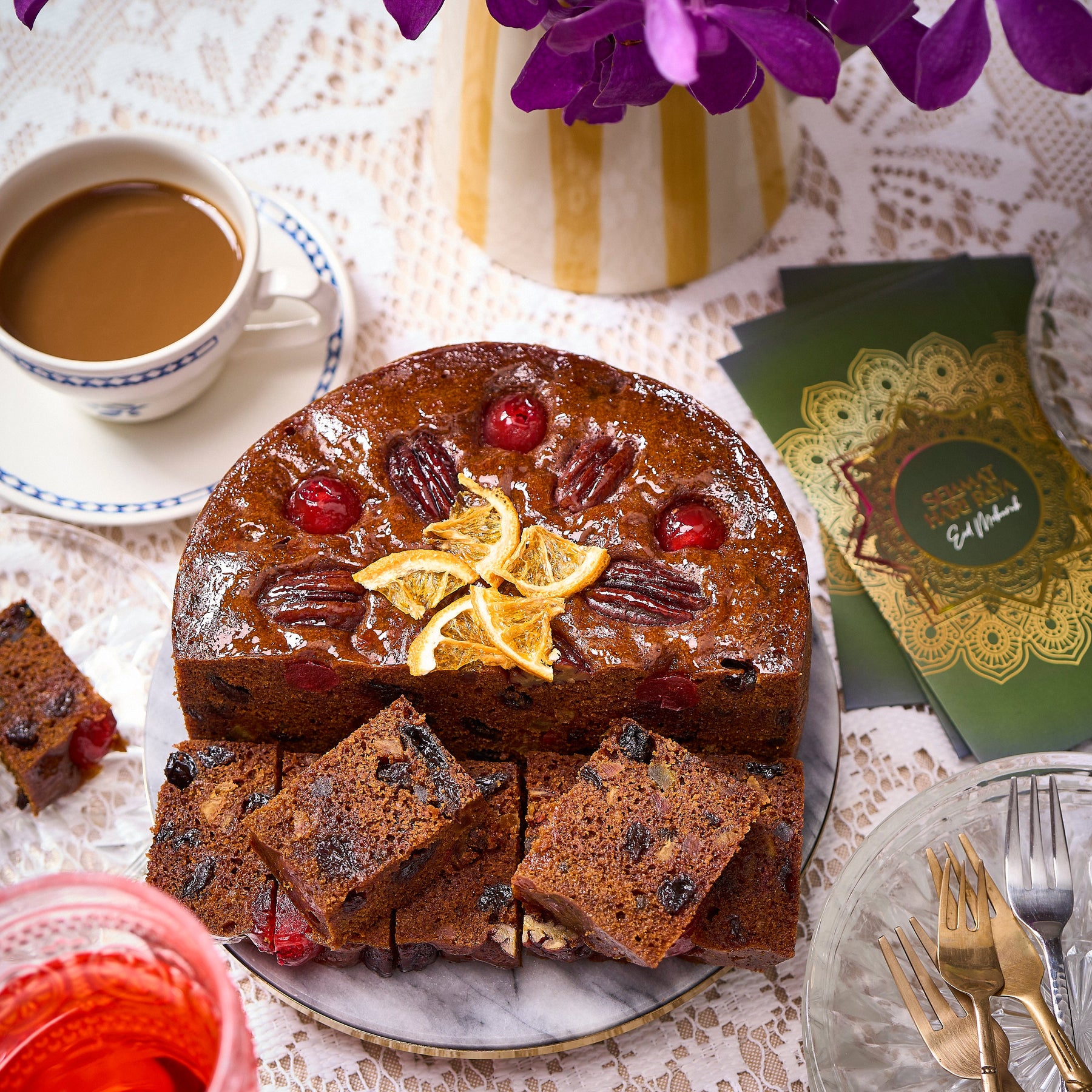 Steamed for hours in small batches, this fruit-studded Kek Kukus is rich with caramelised notes and a gentle hint of nutmeg. A true Hari Raya classic with an elegant reputation, it’s a labour of love that rewards those who appreciate deep, nostalgic flavours.